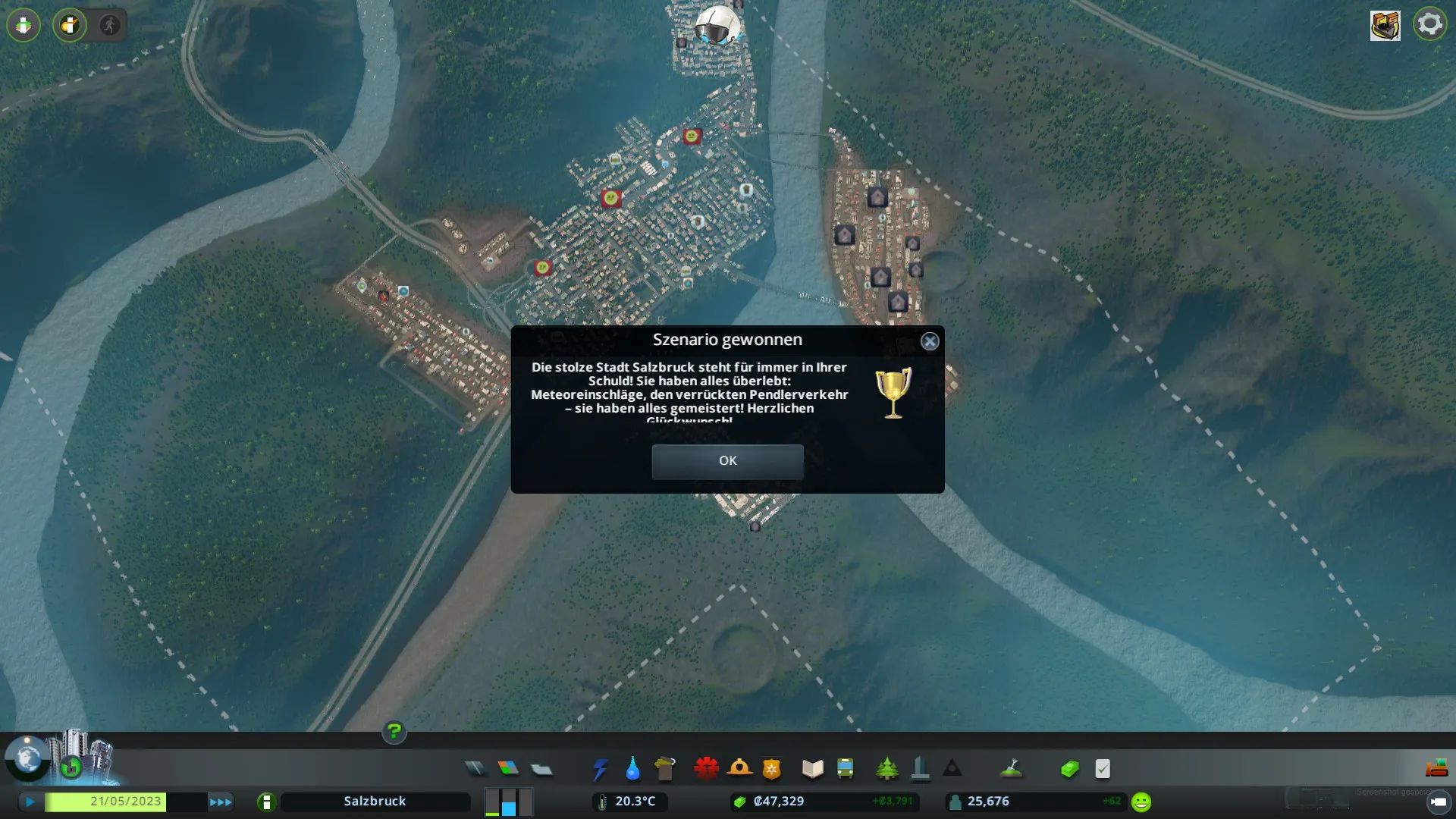 Gelegentlich und speziell am Anfang dieses Szenarios gibt es Meteoriteneinschläge oder Waldbrände. Achtet also auf eine ausreichende Abdeckung mit Feuerwehren und entfernt die Bäume um einen Brand herum, um eine weitere Ausbreitung zu verhindern.