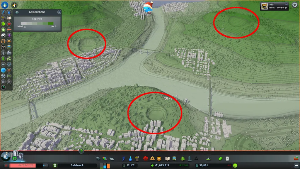 Wir müssen also schnellstmöglich unsere Alpendörfer vergrößern, um Busdepots und später auch U-Bahnen oder Straßenbahnen bauen zu können und weitere Kacheln zur Expansion freizuschalten.