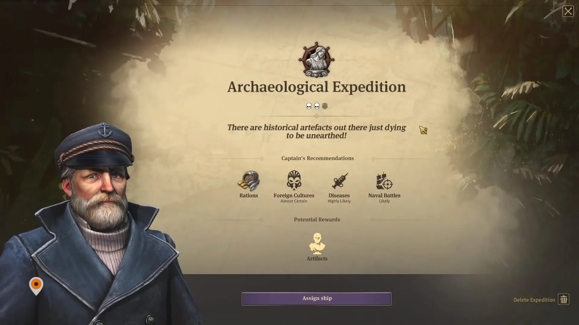Wie nun auch bekannt ist dürfen wir unsere Schiffe auf Expeditionen schicken um seltene Tiere für unseren Zoo zu fangen oder Artefakte in fremden Ländern auszubuddeln.