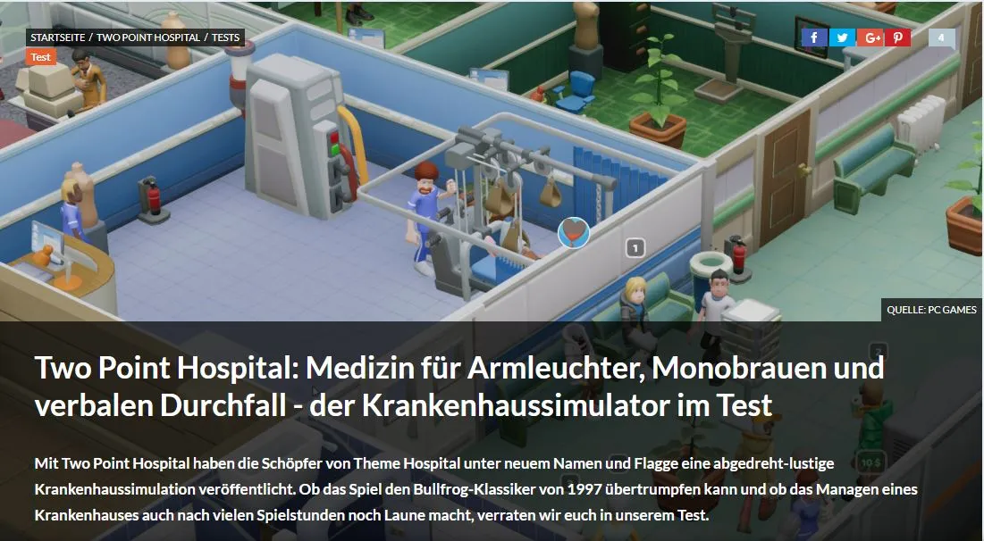Ich habe mir auch Two Piont Hospital zu gelegt und ich musss sagen ach ja wie Schön das ist es macht so viel Spaß.