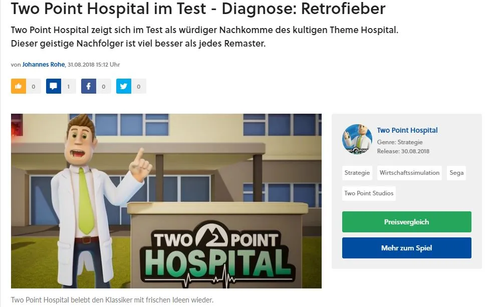 Also ich finde das Spiel ist super und es macht richtig Spaß wie damals Theme Hospital. Meiner Meinung nach kann das Spiel so wie es jetzt ist nicht bleiben und muss dringend gefixt werden.