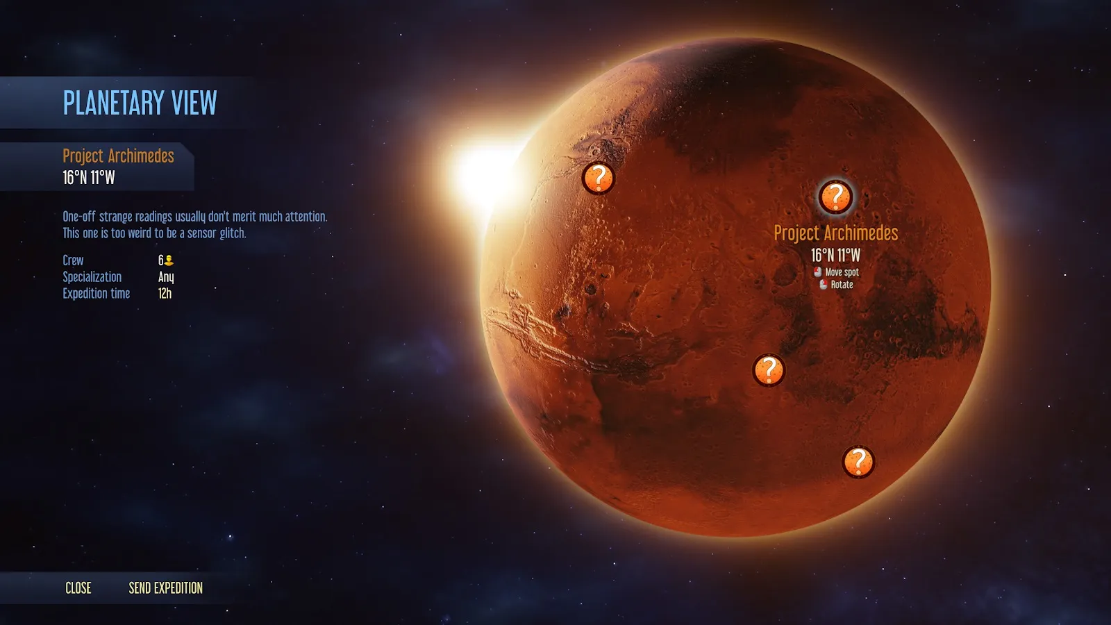 Mit der Einführung der Planetenansicht im Gagarin-Update haben wir auch eine neue Art von Anomalie hinzugefügt. Um eine planetarische Anomalie zu analysieren, müssen Sie eine Rakete zu den Koordinaten auf dem Mars schicken. Sie benötigen auch Drohnen, Rover oder Kolonisten für die Expedition. Planetenanomalien können zu Forschungspunkten, neuen Technologien und Durchbrüchen sowie Ressourcen führen und generell größere Belohnungen bieten als örtliche Anomalien.