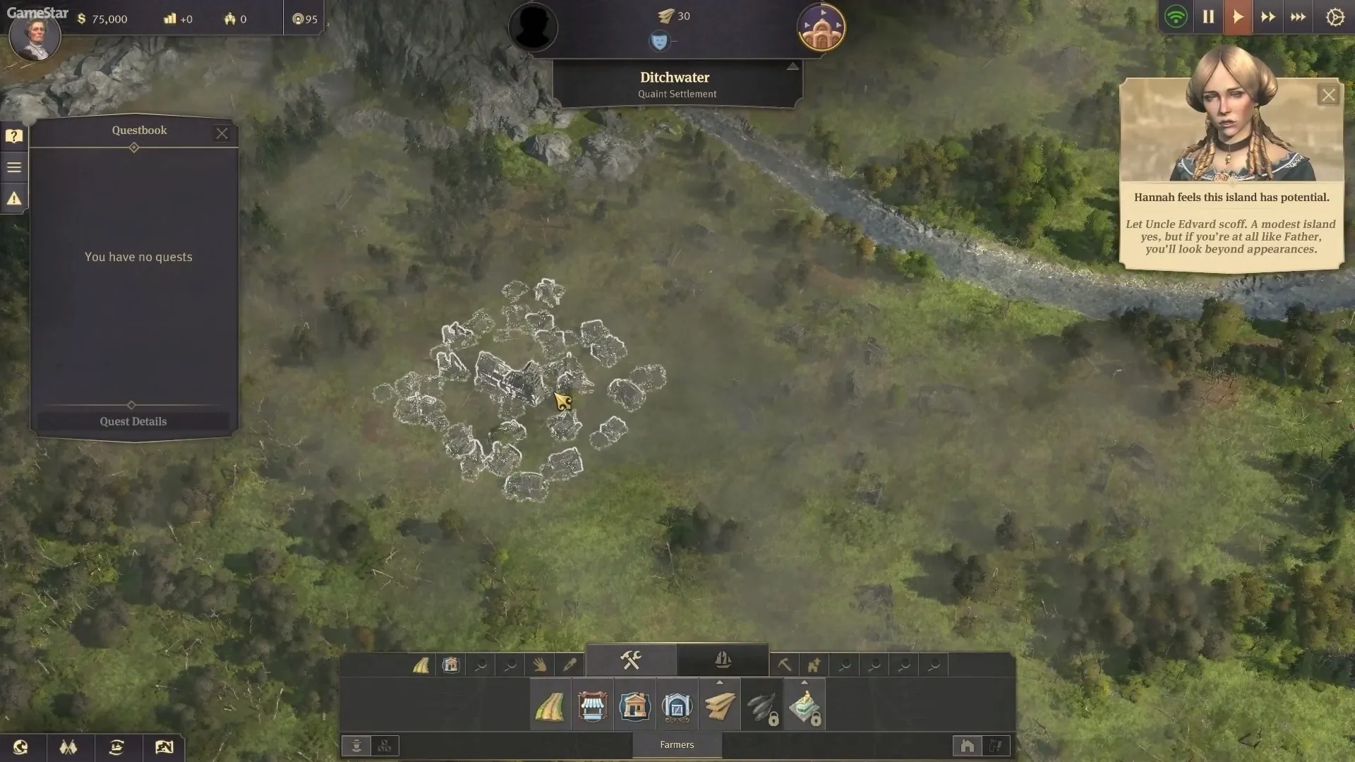 So starten wir mit einer heruntergewirtschafteten Insel um sie zur neuen Blüte zu führen und hinter Wahrheit der Anschuldigungen zu kommen. Der komplette 1.Akt ist eher als Tutorial ausgelegt und macht uns mit den "Basics" des Spiels vertraut.