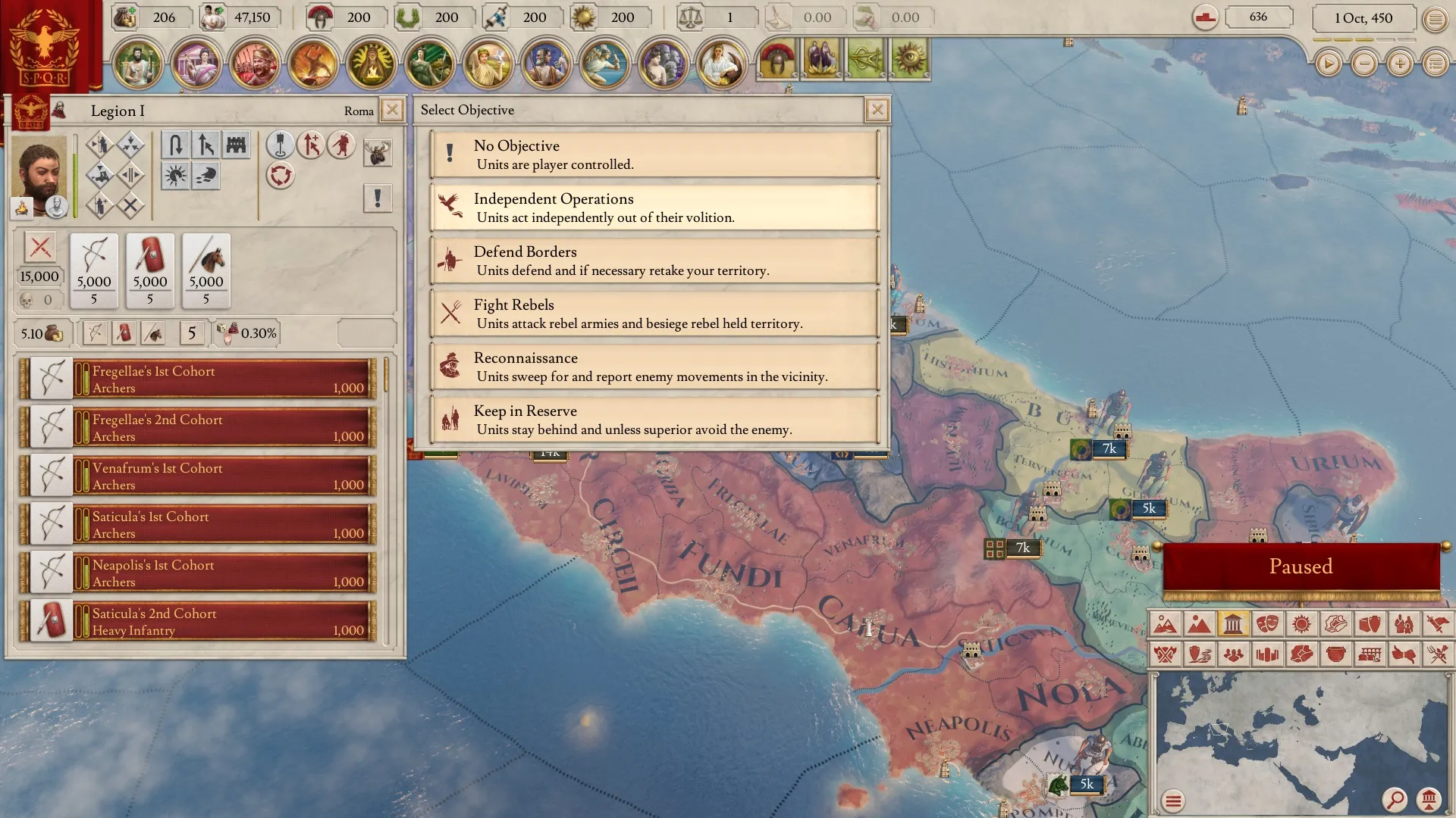 Es gibt auch viele Einheitenvorgaben, die du dir nicht aussuchen kannst, mit denen du es aber trotzdem zu tun bekommen kannst. Illoyale Generäle werden sich einer bestimmten Einheitenvorgabe bedienen, bei dem sie im Wesentlichen das tun, was sie selbst wollen. Du kannst sie dann also nicht herumkommandieren oder sie in den sicheren Tod schicken. Ebenso werden Söldner, die du nicht bezahlst, deine Befehle nicht mehr annehmen und selbstständig agieren.