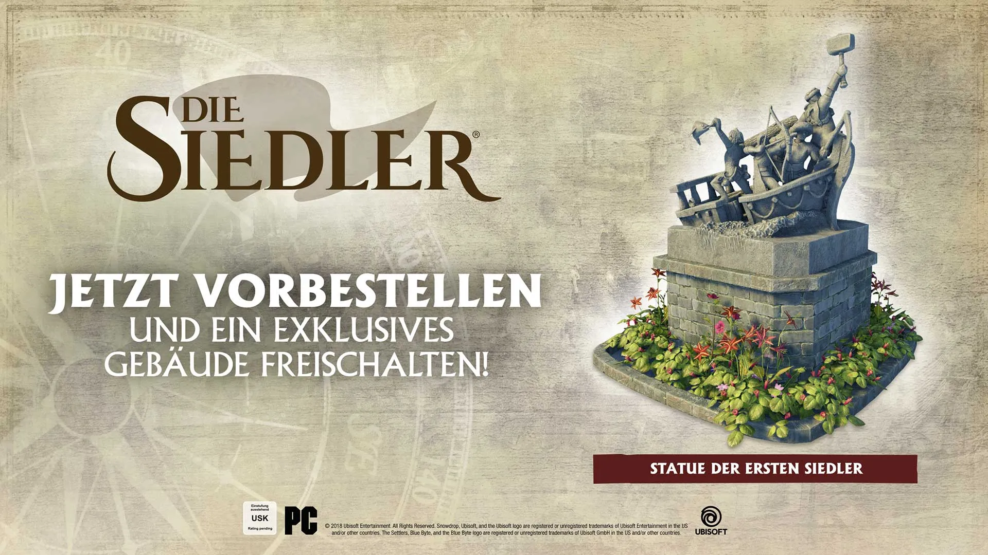 Bei allen Vorbestellungen bekommt man noch die exklusive Dekoration „Statue der Ersten Siedler“