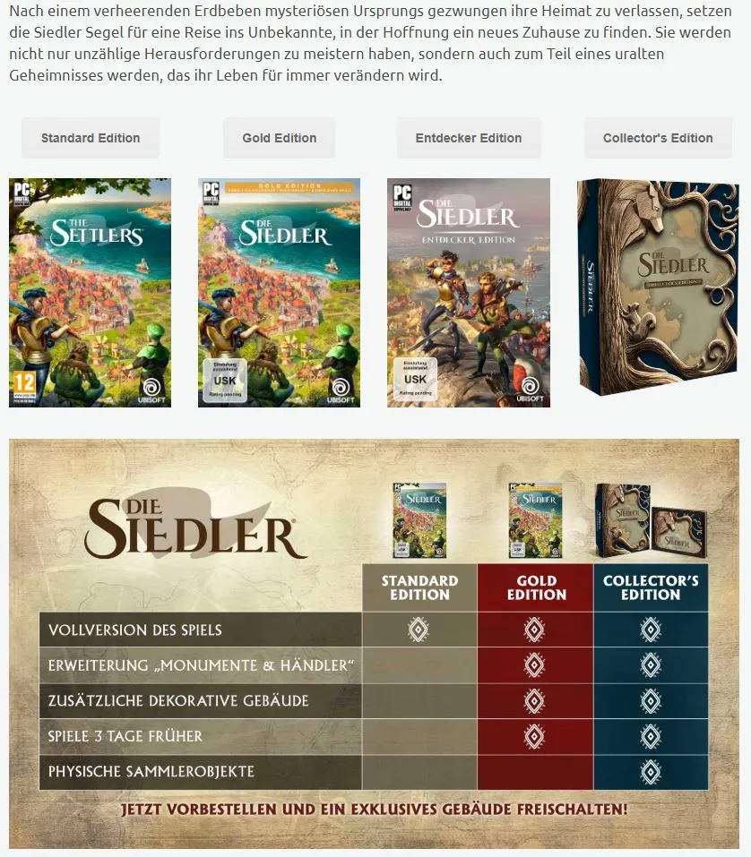 Wie Ihr wisst kann man Siedler jetzt schon vorbestellen. Ich möchte Euch hier eine kleine Übersicht über die verschiedenen Versionen geben. Als, dann mal los ....