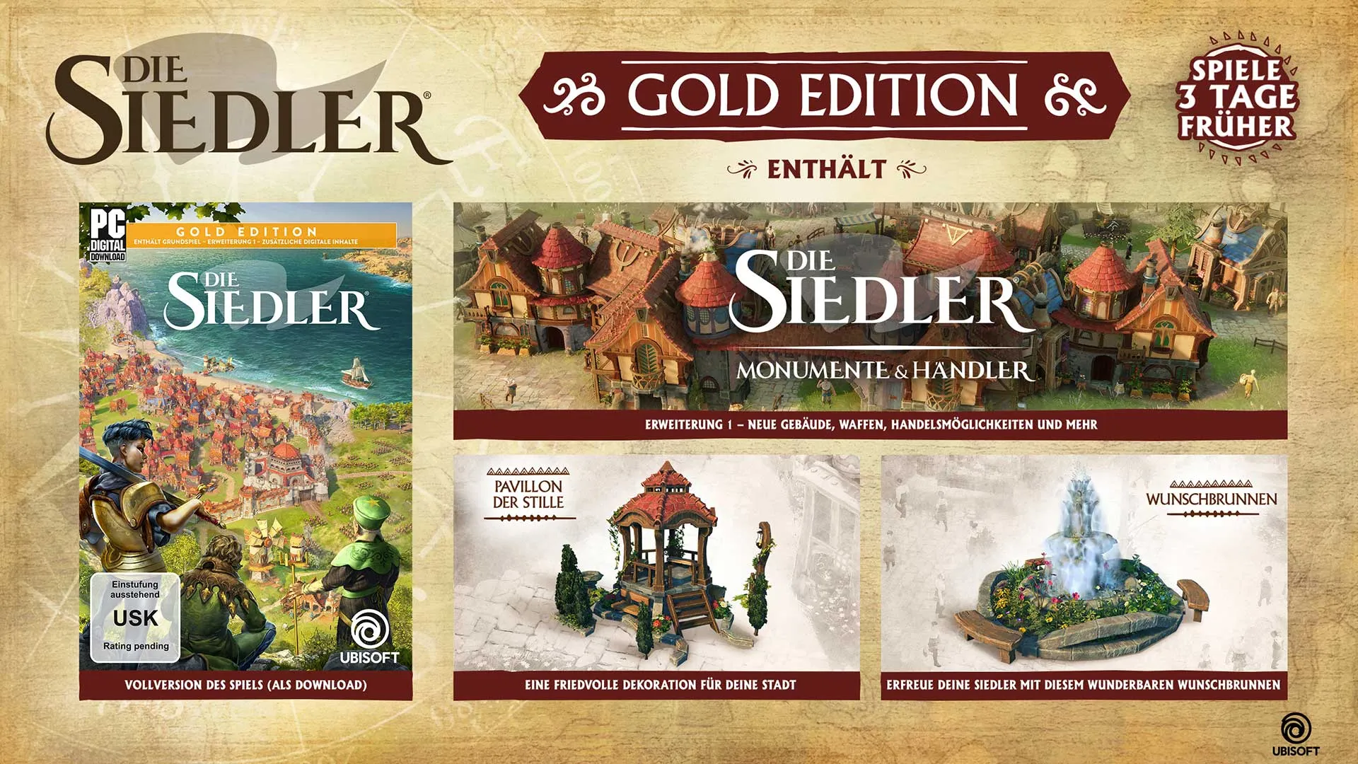 - Spiele 3 Tage früher: Bestelle die Die Siedler® Gold Edition vor und spiele bis zu 3 Tage früher. Werde zu einem wahren Pionier des Spiels.