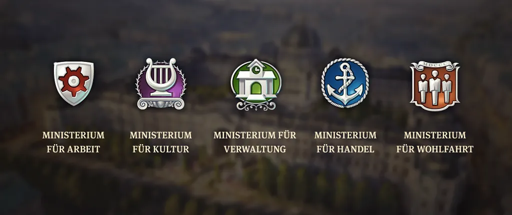 Im Laufe der Zeit könnt ihr diese Ministerien freischalten