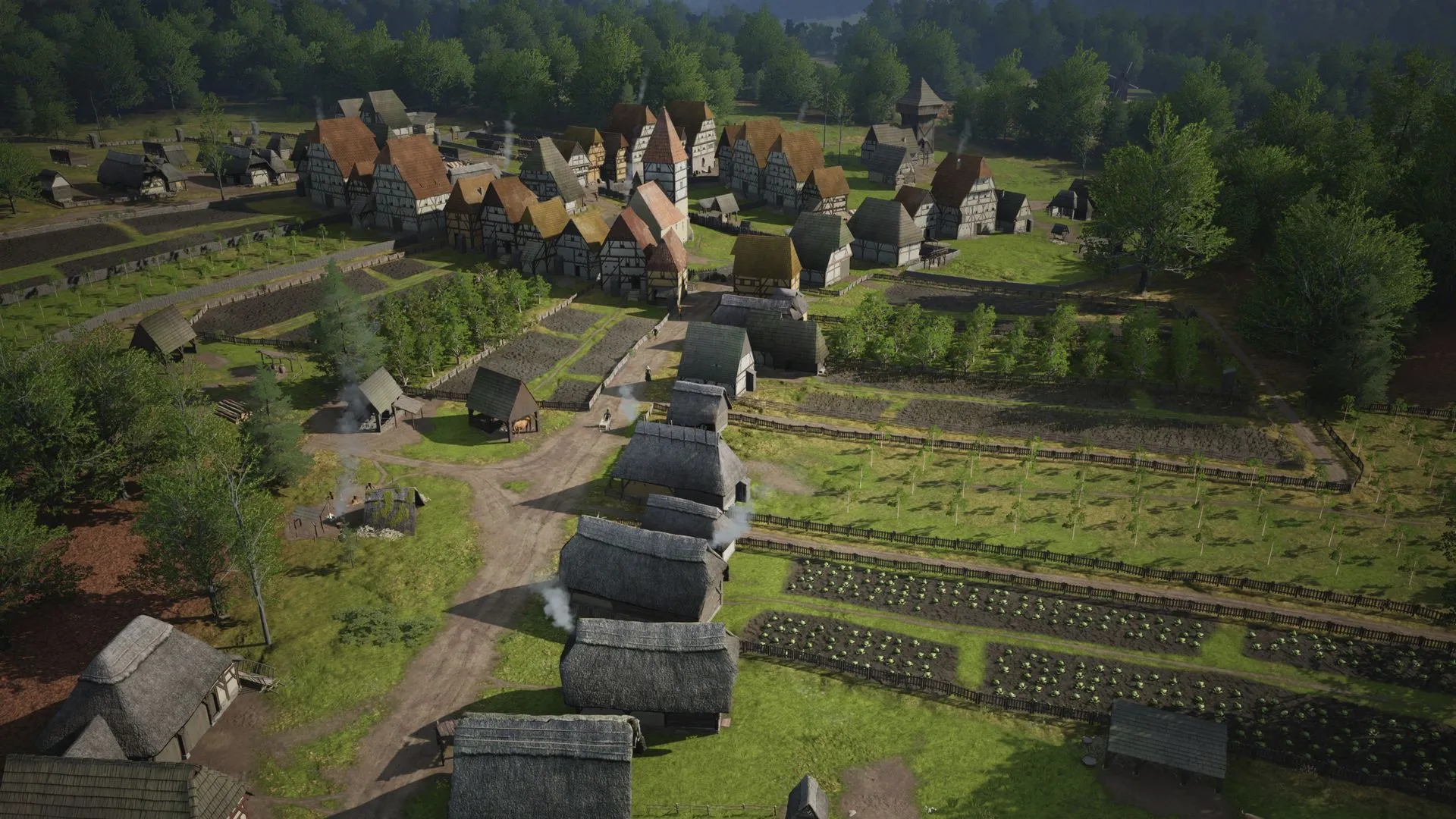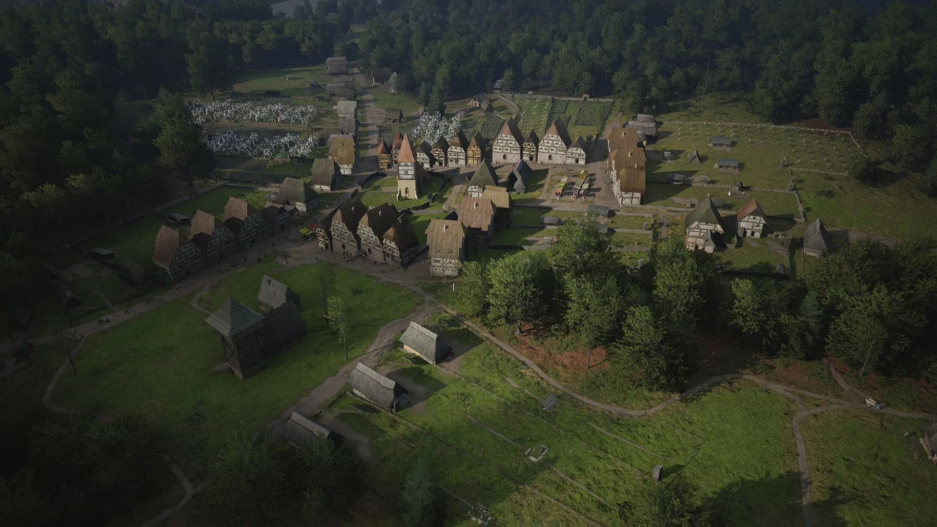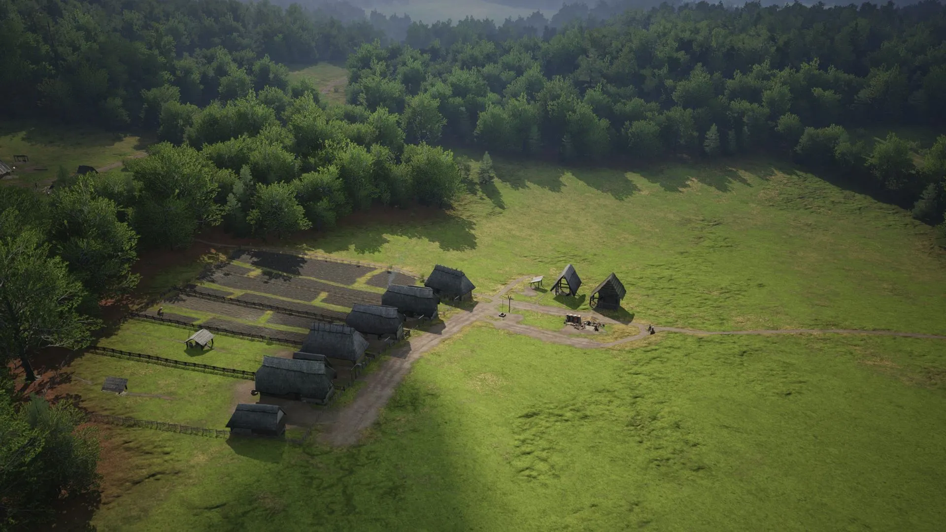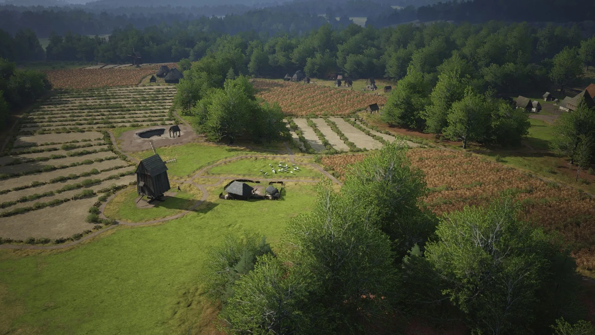 Hier mal der erste Screenshot: Im Vordergrund ein Gerste- und Weizenfeld. Zwei andere Felder liegen brach, die kommen im nächsten Jahr an die Reihe. Windmühle ist klar und links davon ist eine Salzmiene. Mit dem Salz kann ich momentan wenig anfangen da ich kaum Fleisch habe welches zu Würstchen verarbeitet werden kann.