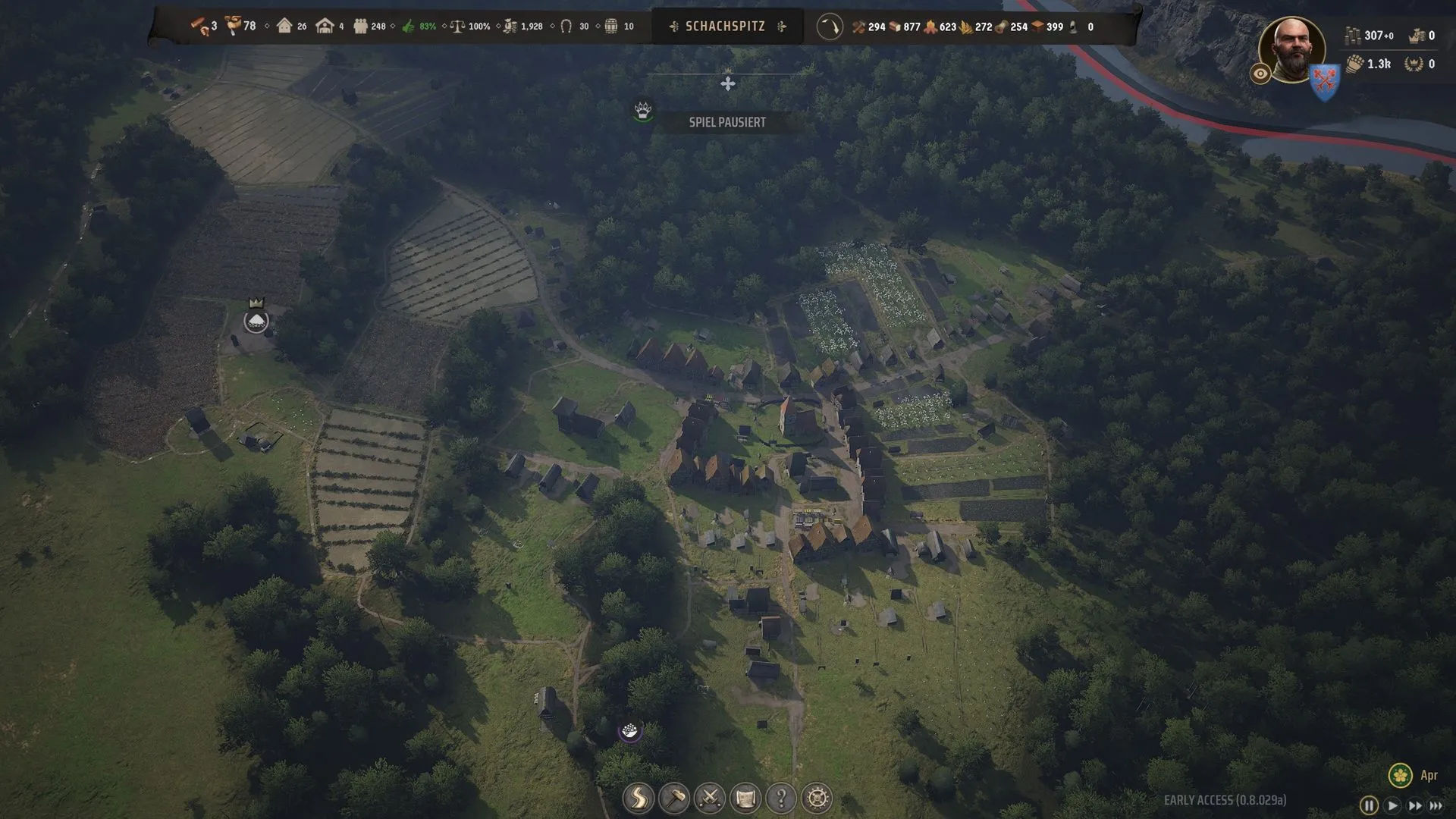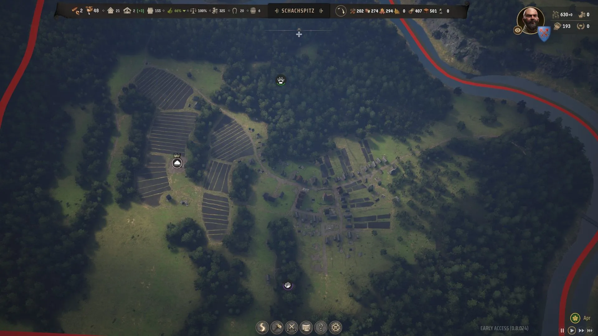 In dem Sinn hat der oberste Dorf Voigt gestern beschlossen eine neue Siedlung zu gründen. Erstmal habe ich bestimmt eine halbe Stunde benötigt bis ich einen halbwegs vernünftigen Startpunk gefunden habe. Mittlerweile kristallisiert sich aber heraus, so toll war der auch nicht. Kein Teich zum Fische fangen und nur normale Vorkommen an Wild und Beeren. Ja, die Fruchtbarkeit für Weizen und Gerste ist sehr gut, aber was nützt dies zu Anfang?