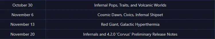 Stellaris: Saison 09 endet am 25. November mit dem Infernals Species Pack und dem Update 4.2 „Corvus“.