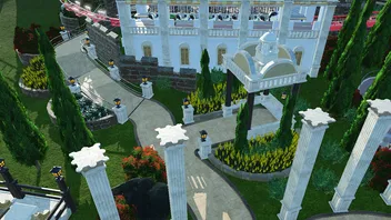 Die Kinderachterbahn habe ich mit der neuen AlphaVersion hinzugefügt (Bild Nr. 10), zuerst wollte ich sie etwas anders Thematisieren (eher modern), nun ist es mehr ein Kloster geworden.