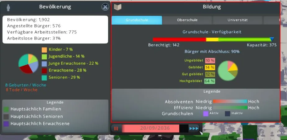 Plötzlich wuchs die Zahl der Arbeitslosen unverhofft schnell. Es waren knapp 4 Ingame Jahre vergangen und die Zahl der Arbeitslosen Bürgern triggerte mich etwas, nicht wegen der Arbeitslosen, sondern wegen dieser "Nicht vermittelbaren"