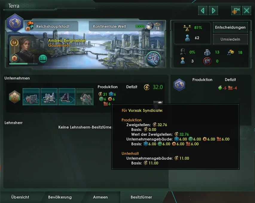 Was ich zu den Zweigstellen gefunden habe, bei 0 Kriminalität besteht eine monatliche Chance, dass sie verschwinden. ABER maximal eine alle 10 Jahre. Soweit ich das in meiner Partie jetzt beobachten konnte stimmt das, bei mir verschwindet aktuell alle 11-13 Jahre eine. Leider kommen viel schneller neue dazu, habe aktuell noch auf neun Planeten welche sitzen. Mittlerweile ist es nicht mehr ganz so wild, der verschenkte Gebäudeplatz für Halle des Urteils nervt, aber ansonsten sind die Auswirkungen verkraftbar weil ich jetzt gut aufgestellt bin. Als das losging war es aber noch voll im early game, da waren die Auswirkungen deutlich stärker spürbar und hat mich echt zurück geworfen... -.-