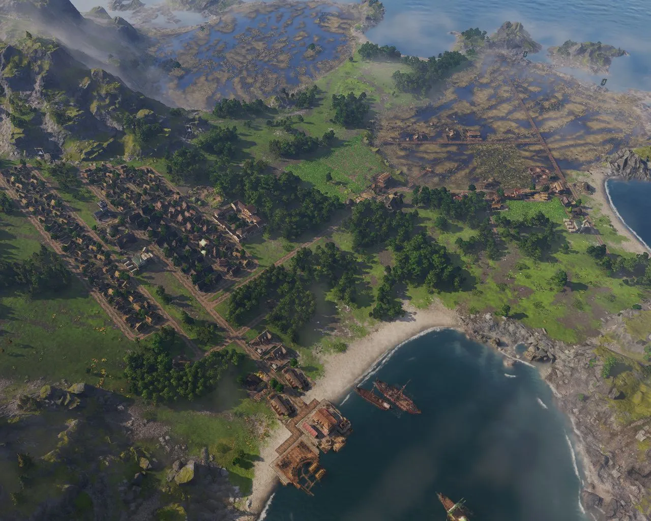 Wenn ihr in Albion angelangt gibt es ein kostenloses Schiff, mit dem Ihr die erste Insel (auch kostenlos) besiedeln könnt. Es werden wieder Gebäude gebaut wie in Latium. Die Wanderer (die erste Stufe) möchte andere Waren haben: Aale und Herzmuscheln. Die Herzmuschelfarm ist ein einfaches Hafengebäude, die Aale dagegen brauchen ein Moorgebiet