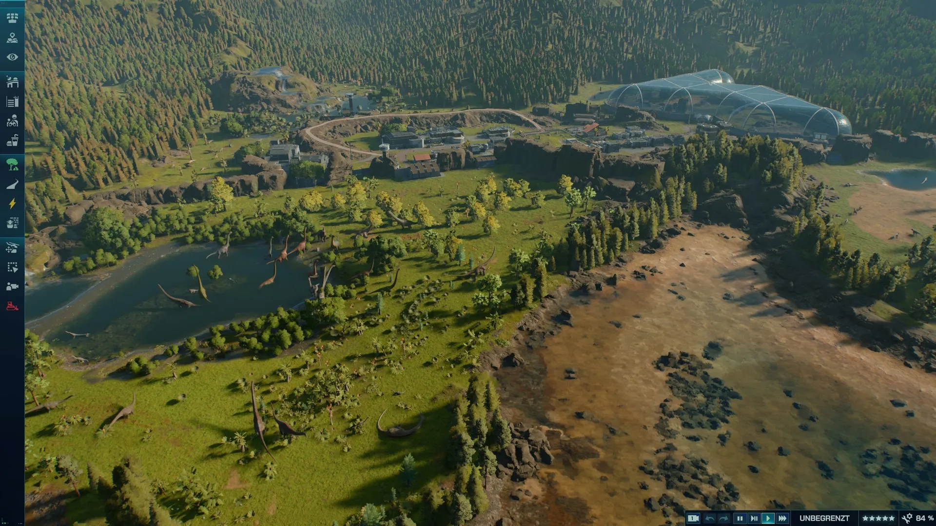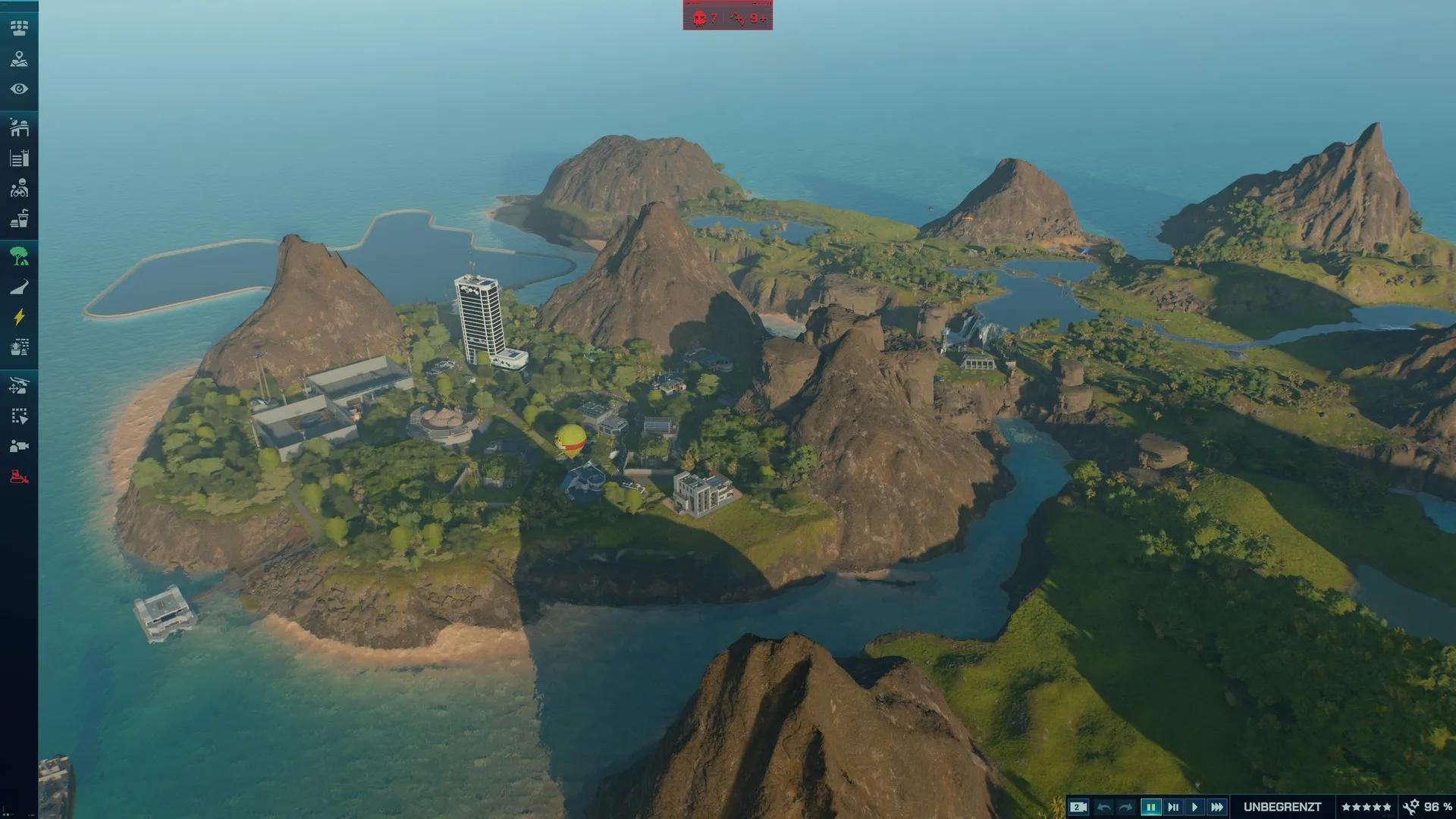 Und aktuell spiele ich auf der "Isle of T-Rex", wo die Raubsaurierer und frei fliegende Flugsaurier im Mittelpunkt stehen. Es gibt aber auch hier eine große Lagune mit Meeresreptilien: