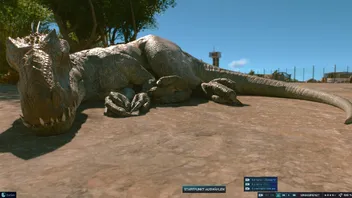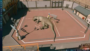 Der Indominus Rex hält ein Nickerchen. Und nach einem Kampf mit einem Rudel Velociraptoren ist er schwer gezeichnet. Im Behandlungszentrum werden verletzte Tiere dann aber wieder rasch zusammengeflickt...